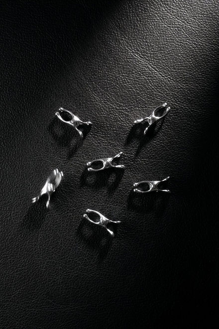 Precious clamps symbolizing an embrace, designed for the nipples and other sensitive areas of the body.